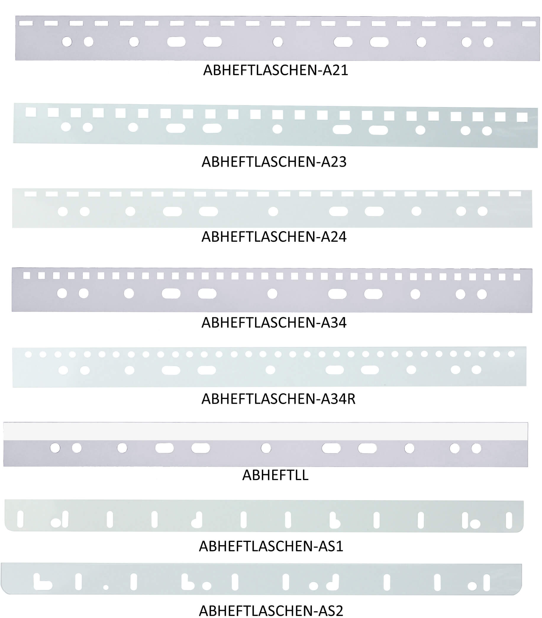 Abheftstreifen aus transparentem PVC 300 mic mit 4 fach-Lochung Draht 2:1 (100 Stück)