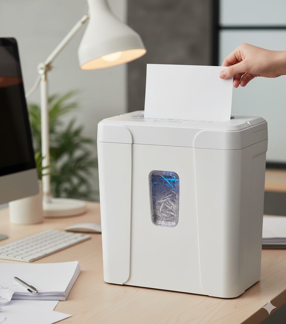 Der 21L Auffangbehälter ermöglicht eine längere Nutzung ohne häufiges Entleeren, ideal für Büros oder Arbeitsbereiche mit mittlerem Dokumentenaufkommen.