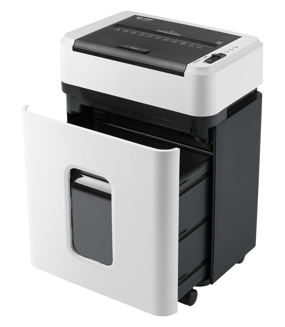 Der neue Aktenvernichter von LMG mit der Sicherheitsstufe P5 ermöglicht es Ihnen bis zu 10 Blatt gleichzeitig in 2x12 mm Papierreste zu verwandeln. Schreddern Sie in Rekordzeit bis zu 60 Minuten am Stück.Die besonderen Merkmale & Funktionen:- Sicherheitsstufe P5- Mikroschnitt, Partikelschnitt mit 2x12 mm Papierschnipsel- Großer 22.7 L Behälter, welcher sich von vorn herausnehmen lässt - Doppelkühlung für Dauerbetrieb - Stopp + Signal wenn Behälter voll ist - 60 Minuten Dauerbetrieb, danach 45 Minuten Pause- Überhitzungsschutz - Extrem leise- Überladungsschutz bei zu viel Papier - Flexibilität durch 4 justierbare Rollen- Ergonomisches und modernes Design- Kann verwerten: Kreditkarten, Büroklammern, Heftklammern- Reverse Funktion - Automatische Abschaltung bei offenem Schneidwerk - Farbe: Kristallweiß- Gewicht: 10.2 kg - 1.8 Meter/Minute - Maße: 366x280x530 mm