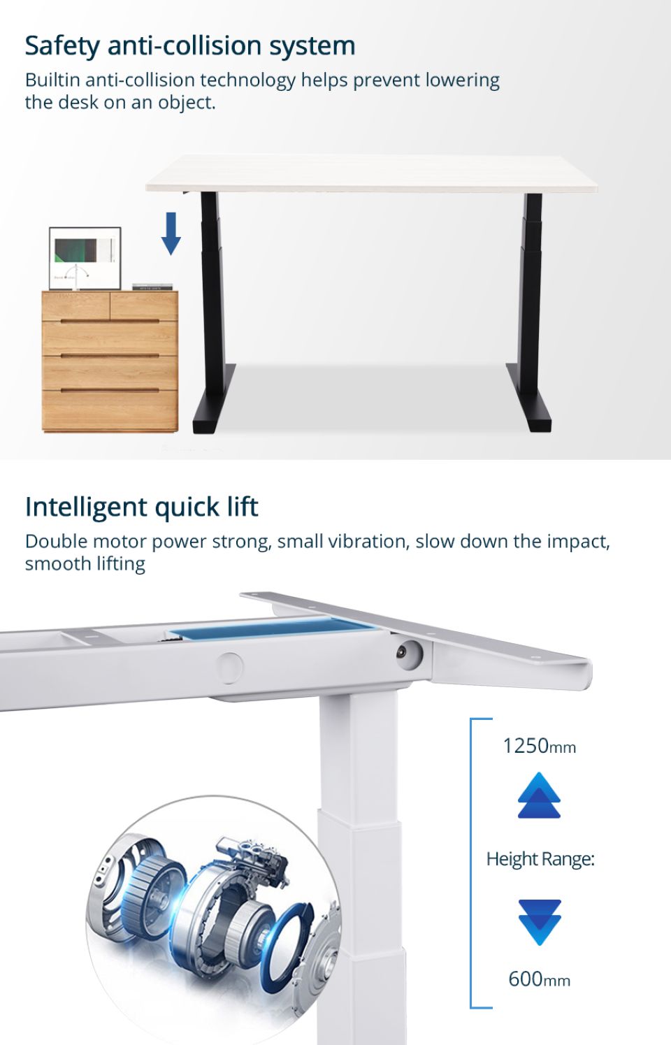 Die Sensoren stoppen automatisch bei Hindernissen und fahren sanft zurück – so bleibt Ihre Tischplatte geschützt.