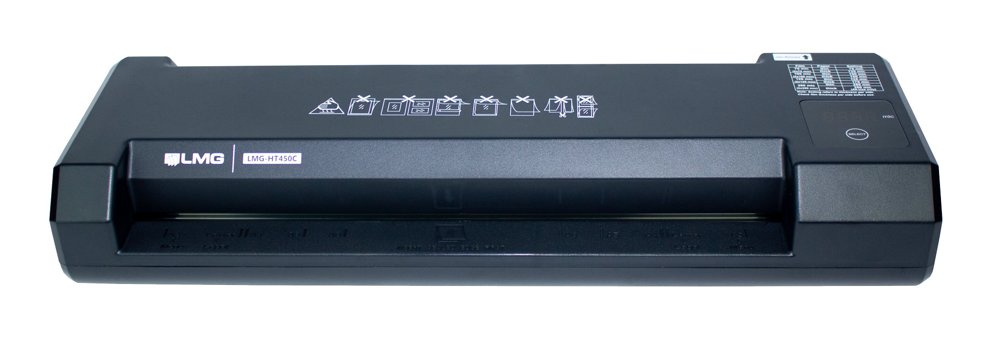 Das LMG-HT450C Laminiergerät bietet schnelles Aufheizen, flüsterleisen Betrieb und intuitive Bedienung über ein LED-Touchpanel – ideal für Zuhause, Büro oder Schule.