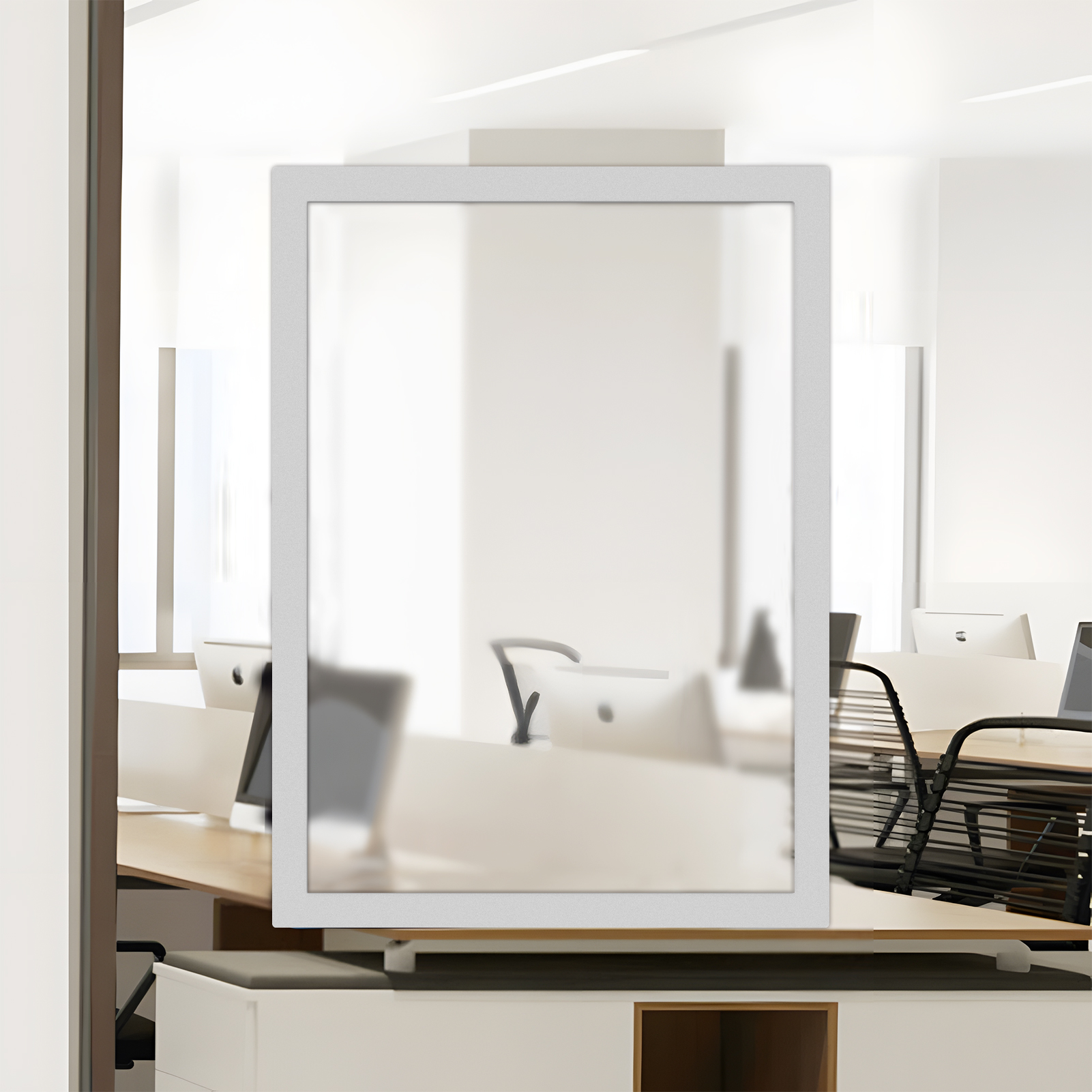 Magnetischer Info-Rahmen A4 Silber – abnehmbar für glatte Oberflächen Der magnetische Info-Rahmen im A4-Format in Silber überzeugt durch eine dezente, moderne Optik und eignet sich ideal für die übersichtliche Darstellung von Dokumenten auf glatten und hochglänzenden Flächen. Durch die selbstklebende Rückseite lässt sich der Rahmen sicher befestigen und bei Bedarf jederzeit wieder entfernen. Warum dieser Info-Rahmen die richtige Wahl ist Zuverlässige Haftung auf Glas, Metall und beschichteten Oberflächen Saubere Verklebung ohne Lufteinschlüsse dank Silikonkleber mit Air-Release-System Beidseitige Präsentation möglich – identische Optik auf Vorder- und Rückseite Magnetischer Öffnungsmechanismus für komfortables Einlegen und Wechseln Mattierte, transparente Frontfolie für gute Lesbarkeit bei Lichteinfall Mehrfach repositionierbar und rückstandslos entfernbar Hitzebeständig bis 70 °C, auch für sonnige Einsatzorte geeignet Variable Nutzung im Hoch- oder Querformat Technische Daten Format: A4 Außenabmessungen: 325 × 238 mm Sichtfläche: 290 × 202 mm Rahmenbreite: 18 mm Farbton: Silber Materialien & Aufbau Frontseite: Mattiertes, hochtransparentes PP Rahmen: Integrierte Magnetleiste Rückseite: Silikonkleber mit Luftkanälen Geeignete Einsatzbereiche Der silberne A4-Magnetrahmen eignet sich besonders für eine sachliche, hochwertige Informationsdarstellung in: Büros, Agenturen und Konferenzräumen Verkaufsflächen und Schaufenstern Produktionsumgebungen und Werkstätten Immobilien- und Beratungsbüros Öffentlichen Bereichen mit Publikumsverkehr Lieferumfang 1 × Magnetischer Info-Rahmen A4 in Silber, einzeln verpackt
