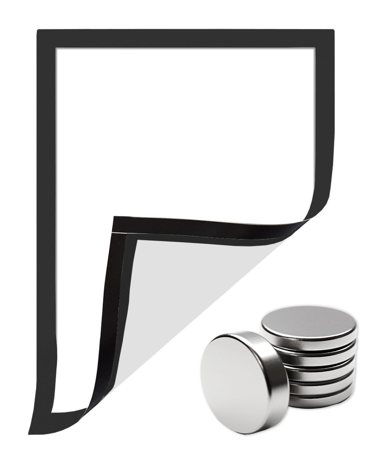 Die Rückseite ist mit flexiblen Magnetstreifen ausgestattet und haftet zuverlässig auf allen magnetischen Flächen. Der Rahmen kann jederzeit neu positioniert oder entfernt werden – ohne Klebstoff und ohne Rückstände.