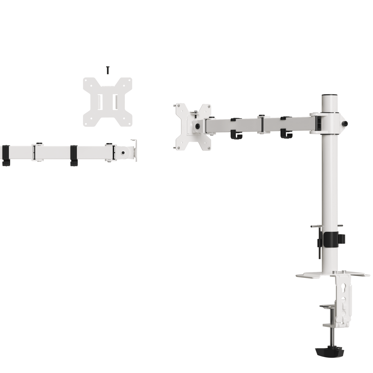 Die Halterung unterstützt Bildschirme von 17–32 Zoll bis max. 10 kg pro Arm. Alternativ lässt sich ein Monitorarm auch als Laptophalterung nutzen (bis 17 Zoll). Dank VESA 75x75 mm & 100x100 mm ist die Monitoraufnahme mit nahezu allen gängigen Bildschirmen kompatibel.