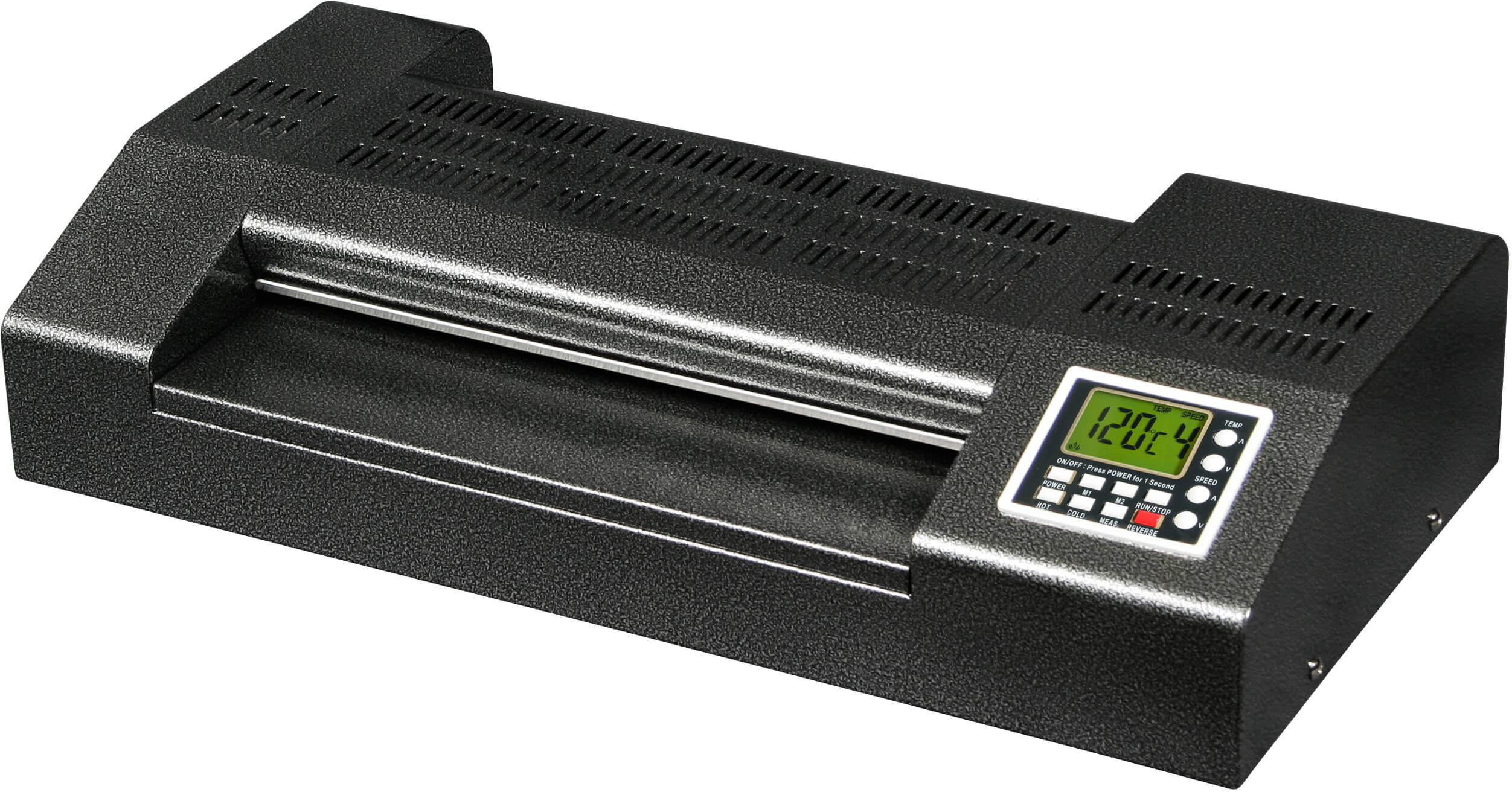 Dank der präzisen digitalen PID-Temperatursteuerung und dem übersichtlichen Bedienfeld mit Display lässt sich der Laminator einfach und exakt einstellen. Die großzügige Arbeitsbreite über DIN A3 hinaus erleichtert das Einlegen unterschiedlichster Formate erheblich.