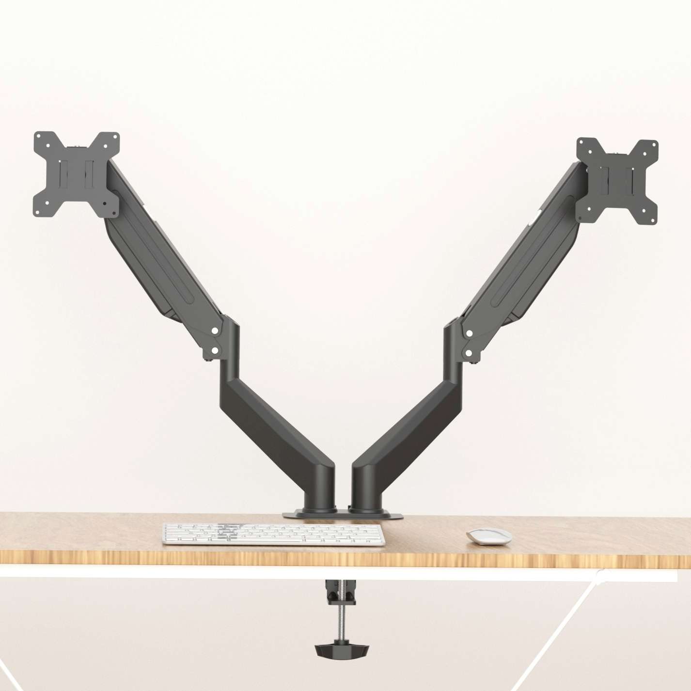 LMG Gasfeder-Monitorhalterung für 17–32 Zoll – ergonomisch & flexibel Die Gasfeder-Monitorhalterung von LMG ist die ideale Lösung für ergonomisches Arbeiten mit Bildschirmen von 17 bis 32 Zoll. Mit einer Tragkraft von bis zu 10 kg und zahlreichen Einstellmöglichkeiten lässt sich der Monitor ganz einfach an Ihre Sitz- oder Stehposition anpassen. Perfekt für moderne Büros, Homeoffices und professionelle Arbeitsplätze. Volle Bewegungsfreiheit für Ihren Bildschirm Der flexible Monitorarm erlaubt eine präzise Ausrichtung des Bildschirms – in Höhe, Neigung und Position. Er lässt sich 360° drehen, um im Hoch- oder Querformat zu arbeiten, ist ±80° neigbar und ±90° schwenkbar. So finden Sie jederzeit den optimalen Blickwinkel für konzentriertes, ermüdungsfreies Arbeiten. Gesund sitzen – besser arbeiten Eine korrekte Bildschirmhöhe und -ausrichtung entlastet Nacken und Rücken. Mit der stufenlos einstellbaren Gasfeder-Technik passen Sie den Monitor mühelos an Ihre Körperhaltung an – für mehr Komfort und langfristige Gesundheit am Arbeitsplatz. Platz schaffen auf dem Schreibtisch Dank der durchdachten Bauweise hebt die Monitorhalterung den Bildschirm vom Tisch und schafft so wertvolle Arbeitsfläche. Das integrierte Kabelmanagement hält Ihre Leitungen ordentlich und aus dem Weg – für eine aufgeräumte und produktive Umgebung. Robust, langlebig und stabil Die Halterung besteht aus hochwertigem Metall in elegantem Schwarz und sorgt für einen sicheren Halt Ihres Monitors – auch bei täglicher Nutzung. Das integrierte Kabelmanagement sorgt für Ordnung und schützt Ihre Anschlüsse vor Kabelbruch. Schnelle Montage – in wenigen Minuten einsatzbereit Die Installation ist unkompliziert und dauert nur etwa 10 Minuten. Im Lieferumfang sind alle nötigen Teile sowie eine leicht verständliche Anleitung enthalten. Hinweis: Nicht geeignet für Tischplatten aus MDF, PB oder Glas. Technische Details auf einen Blick: Für Monitore von 17–32 Zoll Maximale Tragkraft: 10 kg VESA-Standard: 75x75 mm & 100x100 mm Beweglich: höhenverstellbar, ±80° neigbar, ±90° schwenkbar, 360° drehbar Material: Metall, Farbe: Schwarz Geeignet für Tischplatten mit 1–10 cm Dicke Integriertes Kabelmanagement Hersteller: LMG Setzen Sie auf die Monitorhalterung mit Gasfeder von LMG – für einen ergonomischen, aufgeräumten und flexiblen Arbeitsplatz.