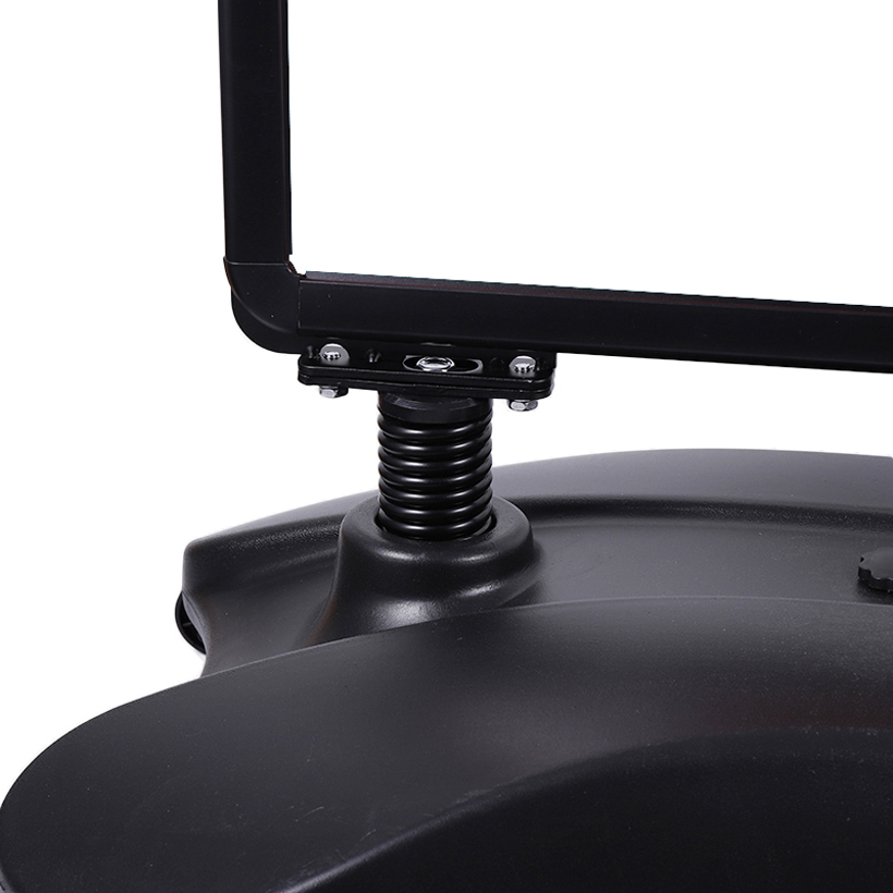 Dank der bewährten Windmaster-Windtalker-Technologie bleibt der Plakatständer auch bei windigem Wetter flexibel und standfest. Die integrierten Stahlfedern sorgen dafür, dass sich der Rahmen bei Windbewegungen anpasst, ohne an Stabilität zu verlieren. So bleibt Ihre Werbung jederzeit optimal sichtbar.