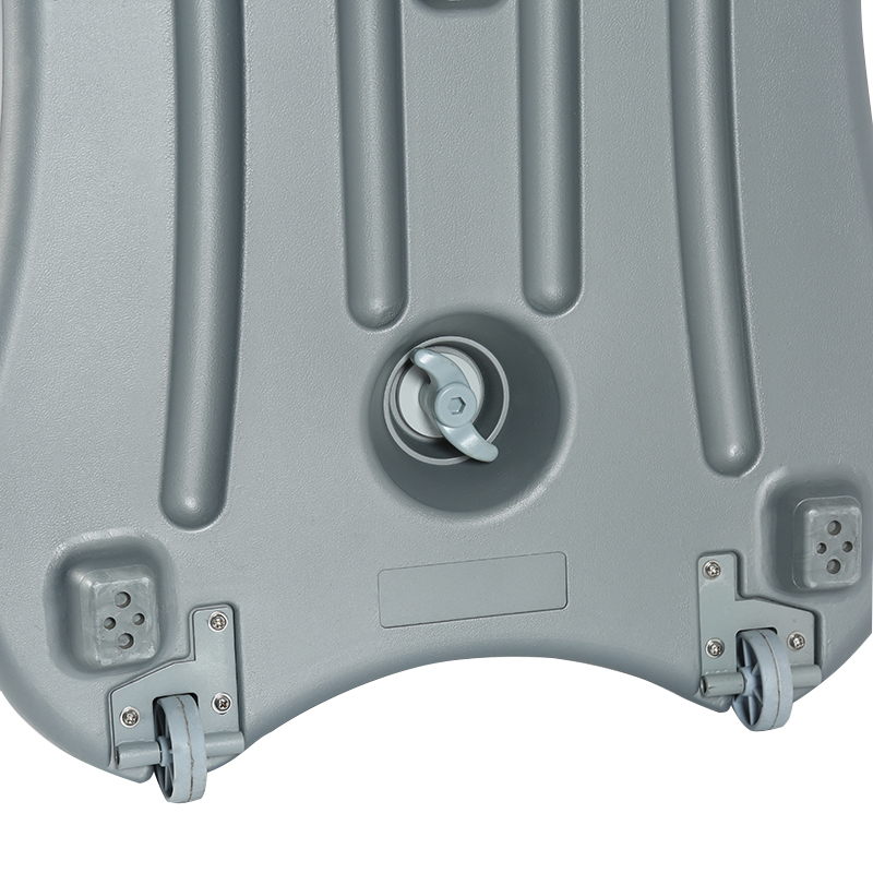 Der robuste Standfuß aus Kunststoff kann mit Wasser oder Sand befüllt werden und sorgt dadurch für einen sicheren Stand. Dank integrierter Rollen lässt sich der Kundenstopper bequem transportieren und flexibel einsetzen.