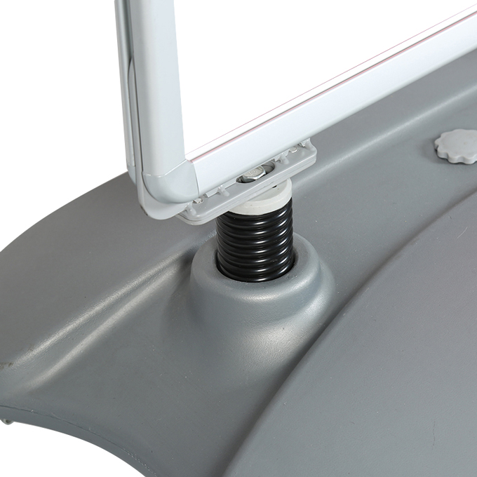 Durch die integrierte Federmechanik bleibt der Aufsteller auch bei windigen Bedingungen beweglich und standsicher. Die flexiblen Verbindungen zwischen Rahmen und Standfuß sorgen dafür, dass sich der Werbeaufsteller bei Wind leicht anpasst und gleichzeitig stabil stehen bleibt. So bleibt Ihre Werbebotschaft jederzeit gut sichtbar.