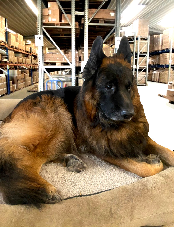 Gody, unser flauschiger Feel-Good-Manager und leidenschaftlicher Pansen-Liebhaber, ist der unangefochtene Star des Büros! Sein Herz schlägt im Takt seiner Liebe zu Pansen, aber wenn es um die Sicherheit unseres Territoriums geht, ertönt sein donnerndes Gebell – ein Klang, der selbst die erfahrensten Postboten in die Flucht schlägt!